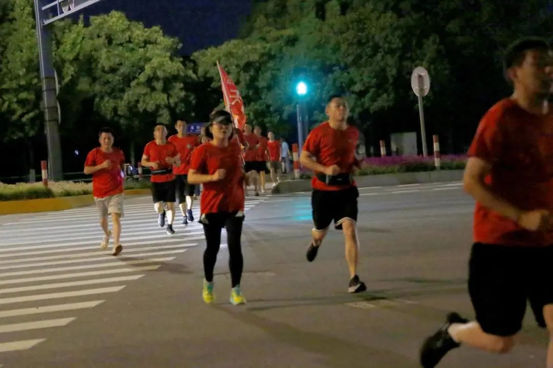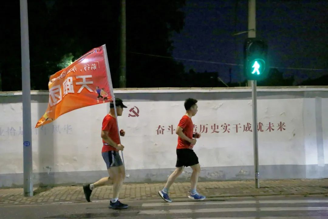 19点整,随着一声哨响,来自各条战线上的天跑团青年员工追风前行,在欢声笑语、昂扬奋进的奔跑中拉开了此次夜跑的序幕。